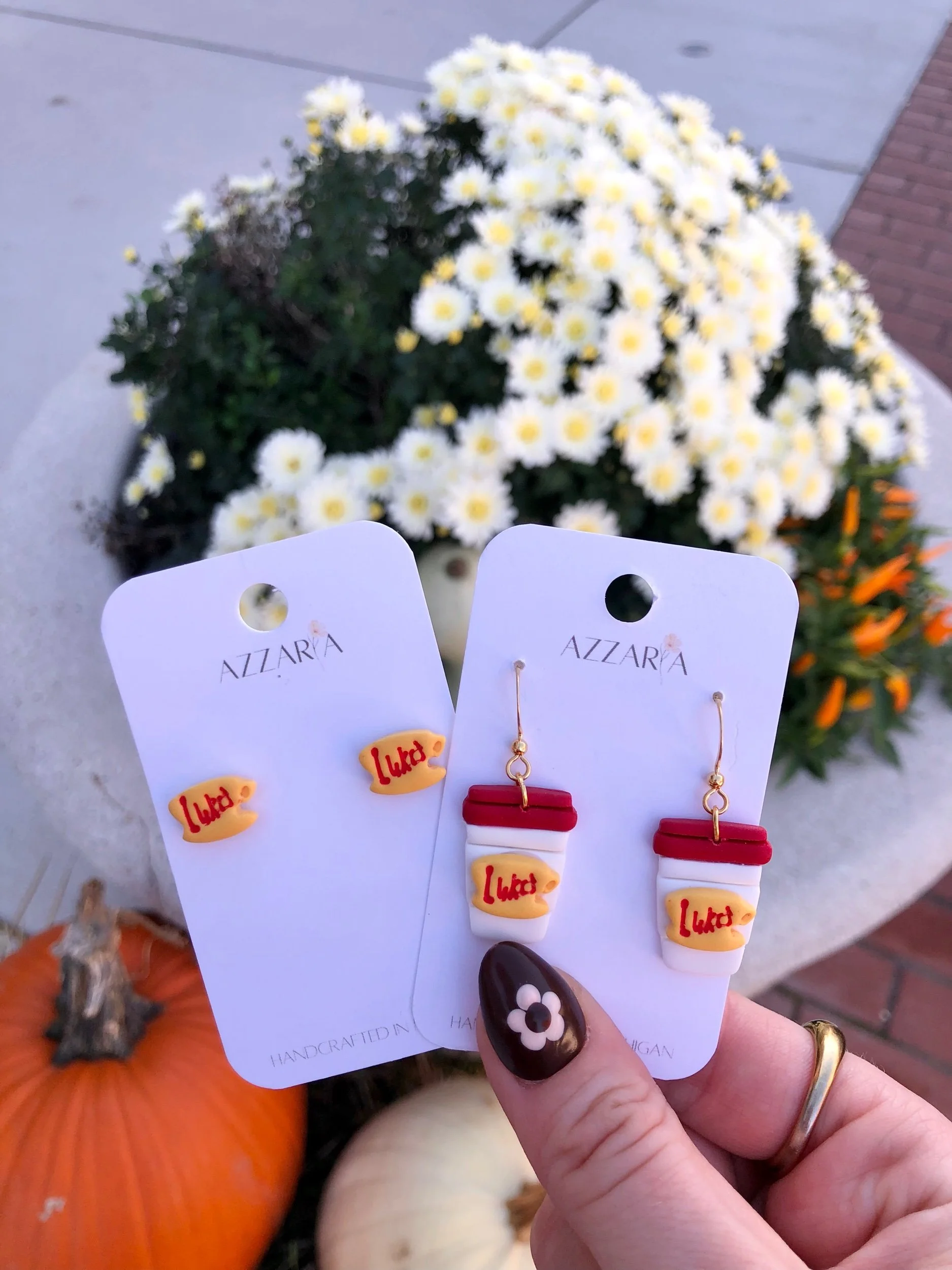 Polymer clay is an incredibly lightweight material, making it ideal for statement jewelry, but it is still clay. For longevity of the pieces, they need to be treated with care. Avoid sleeping, showering, and exercising with them on, and avoid contact with chemicals, perfumes, and oils. Though the clay has a bit of flexibility, do not bend, as excessive bending can cause breakage. To clean, gently wipe with a damp cloth and set out to dry. Warning: excessive rubbing may remove paint and details.