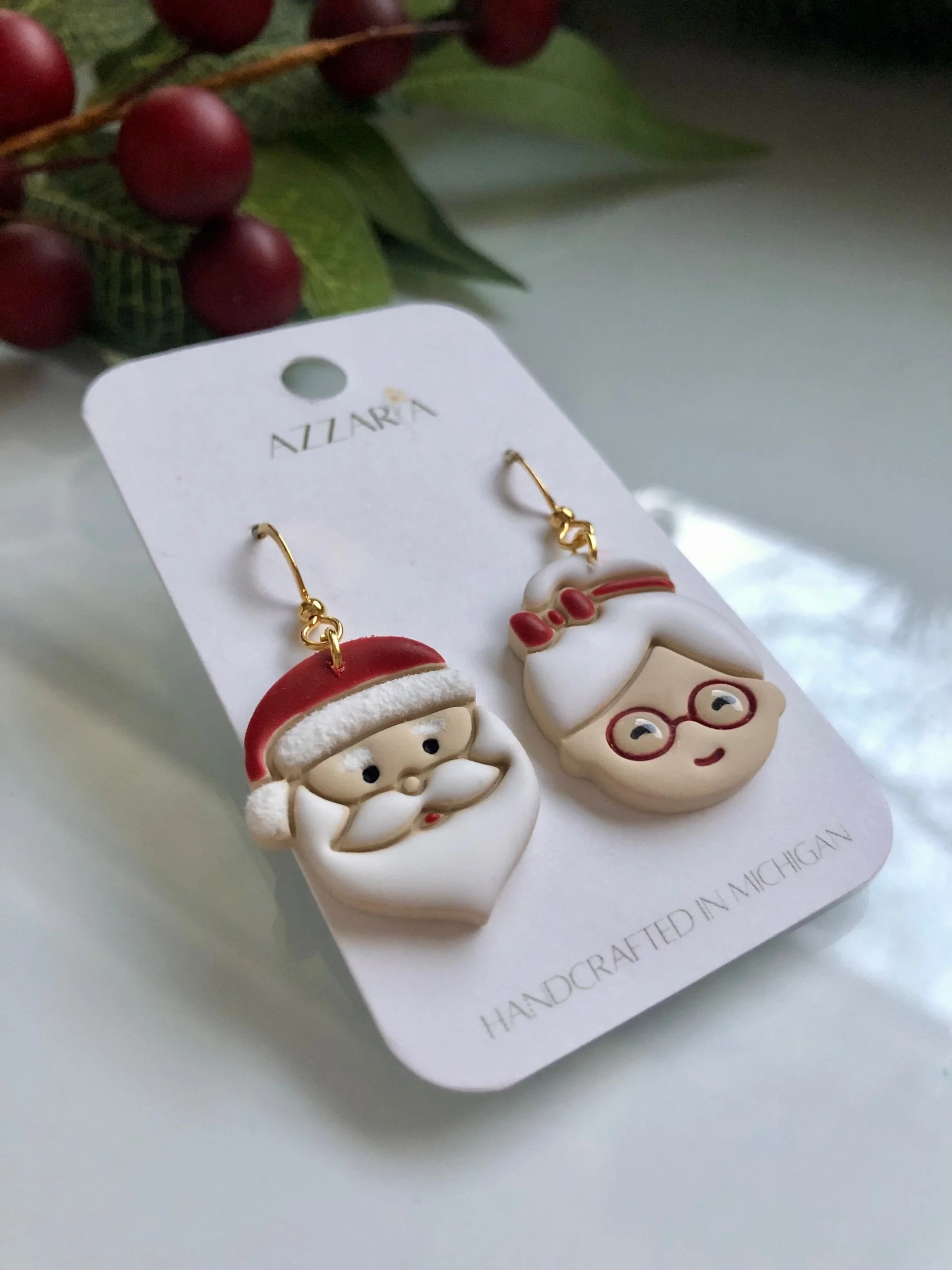 Santa and Mrs Claus faces with handpainted details.